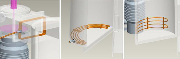 A:安裝于閥門口的制冷盤管? ? B:安裝于真空腔體底部的制冷盤管