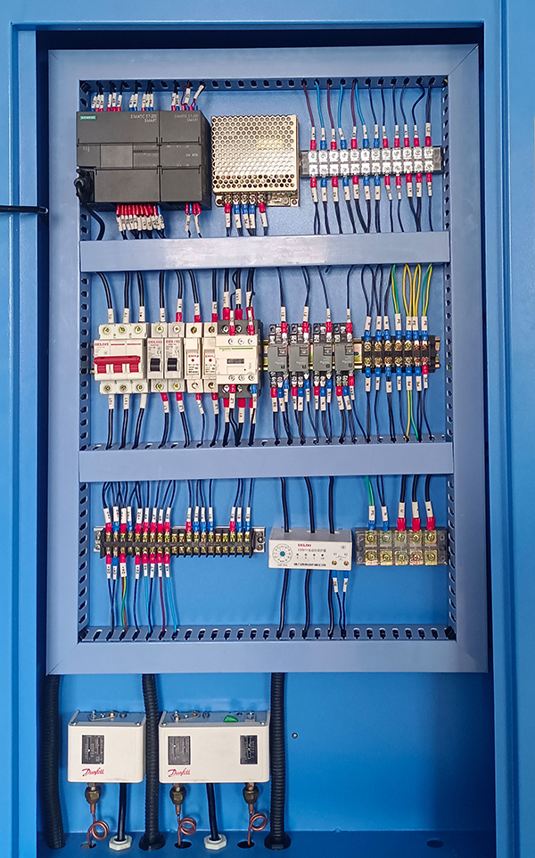 控制面板:觸摸屏顯示,有壓縮機(jī)運(yùn)行指示、報(bào)警指示、遠(yuǎn)近程轉(zhuǎn)換開關(guān)、遠(yuǎn)程運(yùn)行指示